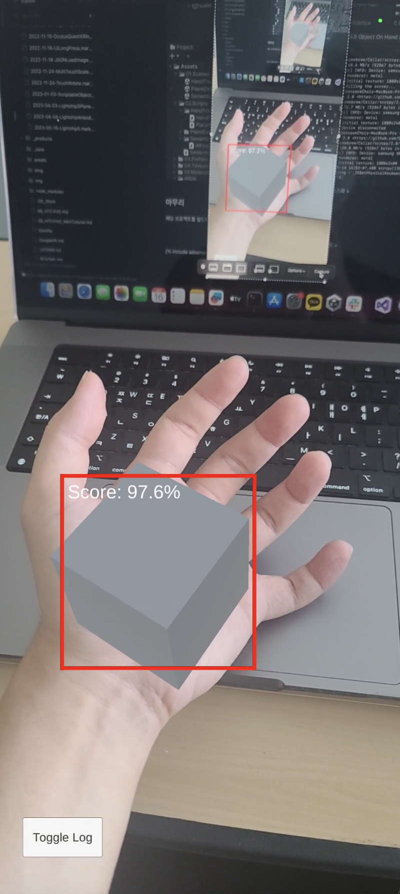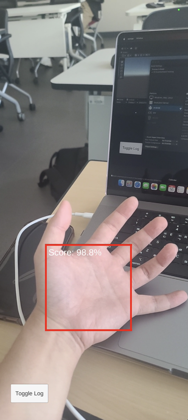 위와 같이 세팅 후 빌드를 하고 테스트를 하면 다음과 같이 손을 인식하는 것을 볼 수 있습니다.
