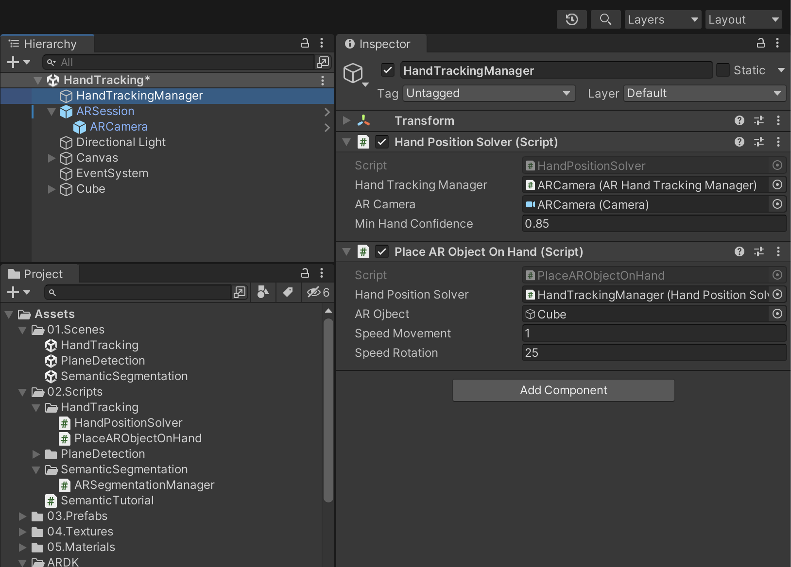 <02. HandTrackingManager 컴포넌트 추가 >
